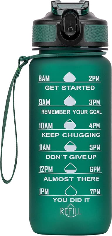 Motivation Bottle vattenflaska PPNMotBtl600-Dgre har en praktisk design med sugrör, lock och handledsrem. Den är BPA-fri oxh tål maskindisk upp till 40°.Läs mer om produkten
