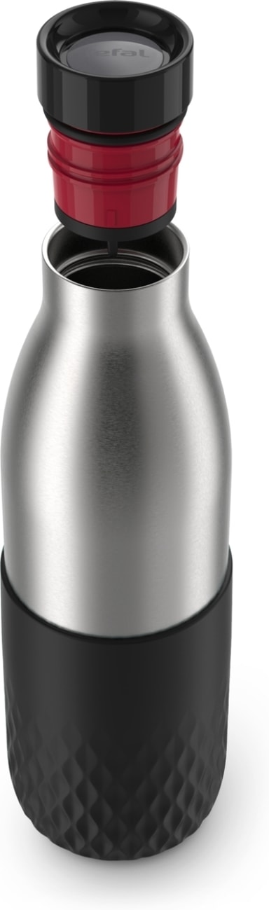 Tefal Bludrop Sleeve dricksflaska är ett miljövänligt val. Säg adjö till engångsplast- och plastflaskor! Tefal Bludrop dricksflaska är det perfekta valet för miljömedvetna människor som vill ta hand om sin dagliga hydrering, minska mängden avfall och njuta av kalla eller varma drycker var som helst. Tefal Bludrop dricksflaska är gjord av rostfritt stål. Därför har flaskan en lång livslängd och kan användas om och om igen. Dess smala form och silikongreppyta säkerställer ett bra och ergonomiskt grepp. Flaskan är också lätt att hantera. Dessutom har stiliga och moderna Bludrop vunnit det internationella designpriset Red Dot.