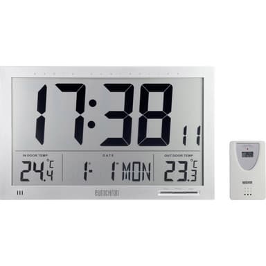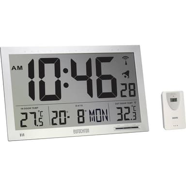 Eurochron EFWU Jumbo 102 DCF Väggklocka 370 mm x 230 mm x 30 mm SilverMöjlighet att välja mellan 12/24-timmars tidsindikering · Larm med väckningsrepetition · Veckodag på 8 språk (engelska, tyska, franska, spanska, italienska, nederländska, danskaLäs mer om produkten