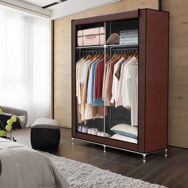 Låsbar DIY plug-in garderob med klädstänger, sidofickor och förvaringsmöjligheter som mäter 170 cm x 108 cm x 54 cm.