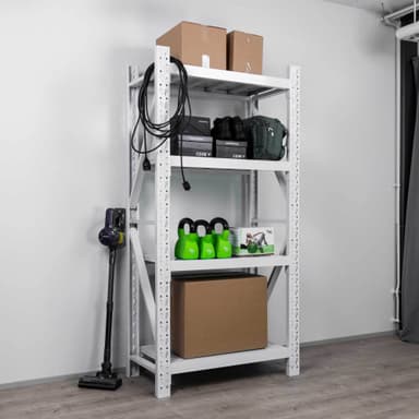 Fornorths robusta lagerhylla i stål, med en lastkapacitet på 800 kg och justerbara hyllor, erbjuder en effektiv och säker förvaringslösning för ditt garage, kontor eller lager.Läs mer om produkten