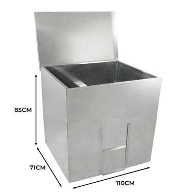 Designad för att motstå de mest extrema väderförhållandena. Denna robusta förvaringsenhet är konstruerad av högkvalitativt galvaniserat stål, vilket ger exceptionell hållbarhet och skydd mot rost och korrosion. Den vattentäta designen och den upphöjda basen säkerställer att ditt kol håller sig torrt och av optimal kvalitet oavsett väder. Dessutom är enheten resistent mot gnagare, vilket håller ditt bränsle säkert, säkert och fritt från oönskade inkräktare.