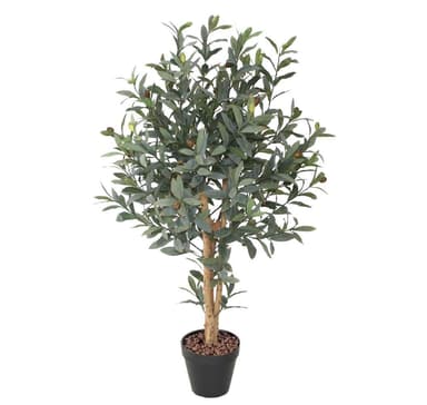 Grön växt OLIV, H90cm, 2 grenar, svart kruka. Konstgjord växt ser ut som naturlig, gjord av kvalitetsmaterial, lätt att sköta.