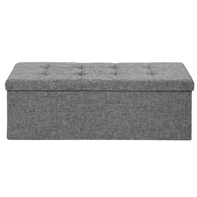 Denna hopfällbara sittbänk med generöst förvaringsutrymme är inte bara en klassisk möbel, utan även en funktionell universalmöbel som passar perfekt i ditt hem. Inuti den rymliga förvaringslådan finns gott om förvaringsutrymme där du kan förvara allt från kläder, skor och sängkläder till andra föremål. Den vadderade sittpallen fungerar både som bekväm sittplats och fotstöd, vilket gör den mångsidig och praktisk. Med sin moderna och tidlösa design passar sittbänken perfekt ihop med de möbler du redan har, vilket gör den lätt att kombinera med olika inredningsstilar. Den stabila ramen av MDF-fiberplattor och den högtäta skumgummidynan säkerställer både hållbarhet och lång livslängd. Förvaringsbänken är enkel att montera och kan fällas ihop, vilket gör den platsbesparande när den inte används.