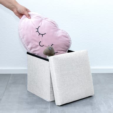 Tack vare motsvarande lock skyddas dina tillhörigheter också från damm och smuts. Håll alltid dina tillhörigheter väl förvarade och perfekt organiserade med denna vackra kubstol!
