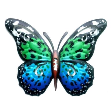 HD055 Iron Art Butterfly Väggdekor Trädgård Yard Hem Väggkonst Ornament - Grön-Blå