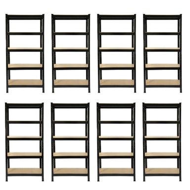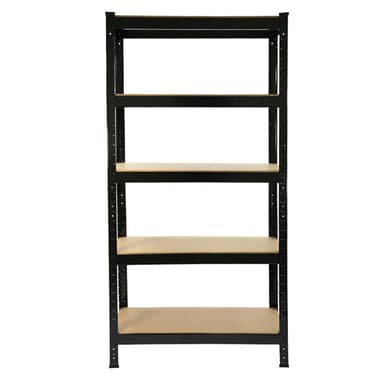 Dessa robusta stålhyllor från T-Rax-serien från Monster Racking är idealiska för användning i ett garage, verkstad, kontor, grovkök eller trädgårdsskjul. Med måtten 750 mm x 300 mm x 1 500 mm B x D x H är dessa högkvalitativa svarta hyllenheter 100 % bultfria och var och en av hyllorna kan hålla upp till 150 kg. Stålet är ytbehandlat med med fyra lager pulverlackerad färg vilket innebär att dessa hållbara förvaringshyllor kommer att behålla sitt utmärkta skick längre.