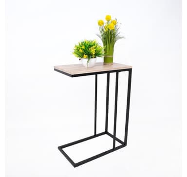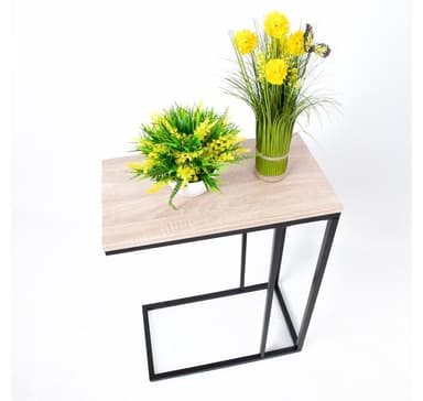 Sidobord ELT ljusbrunt. Det smakfulla sidobordet är användbart dagligen och gör det enklare att ta emot gäster. Bordsskivan är tillverkad av ekbehandlad laminatskiva. Stålrörsbenen är avslutade med svart pulverlackering. Sidobordets mått är 46x26xH62cm.