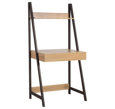 Skrivbord STEP 74x48xH146cm, ek. Ett skrivbord är ett nödvändigt tillägg till alla hem, vilket gör att du kan använda en dator mer bekvämt eller skapa ett praktiskt hemmakontor. Träfärgade skrivbord är idealiska för hemmiljö, eftersom det varma materialet och mjuka tonerna fungerar bra med olika möbler. Skrivbordet har en hylla och en låda med två sektioner och metallskenor. Skrivbordet är tillverkat av melaminskiva. Färgen är ek. Brun pulverlackerad stålram. Måtten på produkten är 74x48xH146cm.