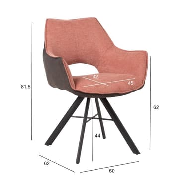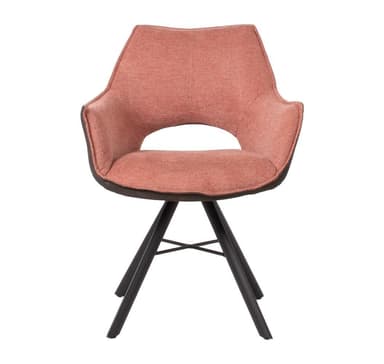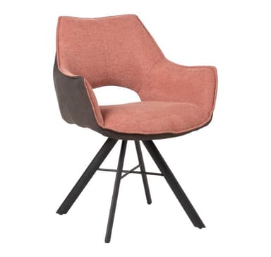 Stol EDDY 60x62xH81,5cm, laxrosa/mörkgrå. Klädd sits med klädsel i tyg. Handtag bakom ryggstödet. Svarta pulverlackerade metallben. Stolen roterar 180° med automatisk backfunktion. Max viktkapacitet 120 kg.