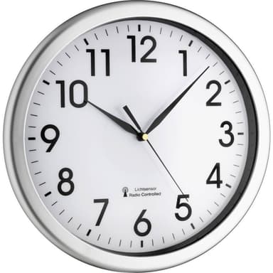 TFA Dostmann 60.3519.02 DCF Väggklocka 30.8 cm x 4.3 cm SilverTrådlös klocka DCF-77 · LED belyst urtavla · Grön LED-belysning med batterier eller nätenhet i kontinuerlig drift eller automatisk till- och frånkoppling med ljussensor · Stor lättavlästLäs mer om produkten
