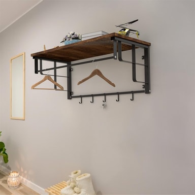 Intirilife vägghylla av metall och MDF med avtagbara krokar i vintagedesign för dina jackor, kläder och andra föremål.