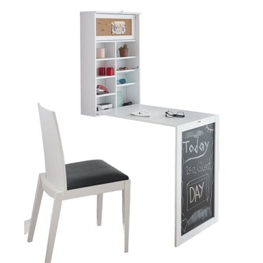 Väggmonterat hopfällbart skrivbord med hylla och anslagstavlaLäs mer om produkten