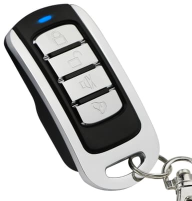 Bekvämt och praktiskt: När du har kopierat originalkontrollerns signal kan du ersätta den med den här fjärrkontrollen. Med praktisk karbinhake att fästa på nyckelknippan med dina andra nycklar. Den är utrustad med fyra olika knappar och fungerar på längre avstånd på upp till 150 meter.
