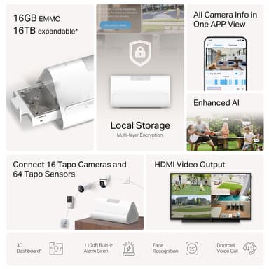 TP-Link Tapo H500 Smart HomeBase, med videoutgång, lokal backup, enhetsdelning och lätt installation, är en säkerhetshub för smarta hem som erbjuder robust säkerhet och bekvämlighet som en central hub.Läs mer om produkten