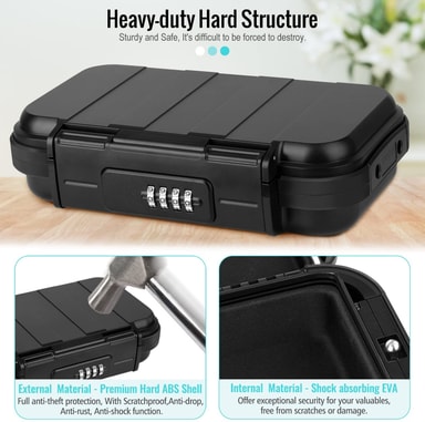 Tåligt och vattentätt: Säkerhetsboxens skal är extremt robust och dessutom vattentätt. Perfekt att ta med på resan.
