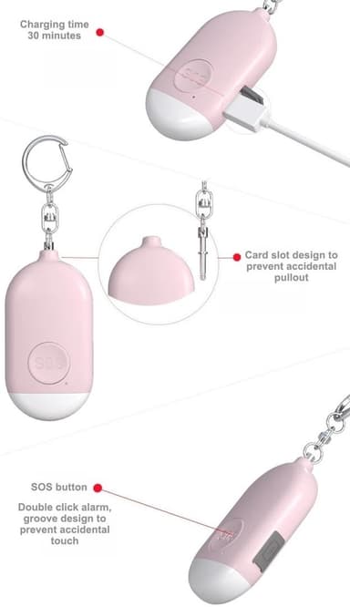 Överfallslarmet är också en perfekt gåva till vänner och familj, särskilt till joggare, friluftsmänniskor, promenerare och barnbarn. Utrustat med en LED-lampa och ett inbyggt 1330mAh lithium batteri som laddas via en mikro-USB-kabel. Lätt, smidigt och smart.