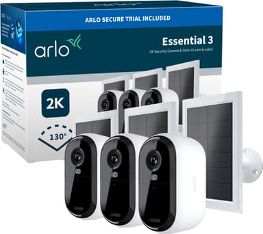 Arlo Essential3 2K säkerhetskamera (3-pack) + Arlo solpanel (3)