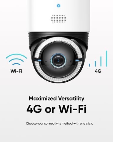 Säkerhetskameran Eufy 4G LTE Cam S330 erbjuder säkerhet utan elnät dygnet runt med solenergi och ett 9 400 mAh batteri, dubbel 4G/Wi-Fi-anslutning, 4K-färgmörkerseende och 360° AI-spårning för omfattande övervakning.Läs mer om produkten
