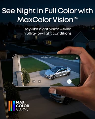 Eufy eufyCam E40 säkerhetskamera håller din egendom säker dygnet runt. Med 2K inspelningskvalitet, MaxColor Vision, PIR-driven rörelsedetektering och en inbyggd solpanel levereras denna kamera med HomeBase S380.Läs mer om produkten