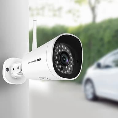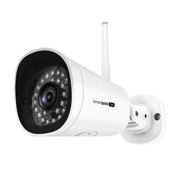 Lättinstallerad, vattentät IP-kamera kompatibel med ismartgate-kontroller. Inkluderar 2MP (1080p) upplösning, rörelsedetektering, SD-kortplats för lokal lagring, Wi-Fi och Ethernet-anslutning och mörkerseende.