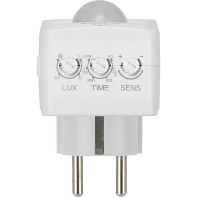 Renkforce 1588385 Mellanplugg PIR-rörelsedetektor 120 ° Vit IP20Inomhus Mellanplugg PIR-rörelsedetektor IP20 Betraktningsvinkel: 120 ° 9 m Bryteffekt - LED: 300 W Bryteffekt - Glödlampa: 1200 WElkostnaden kan sänkas bekvämt och enkelt · Räckvidd påLäs mer om produkten