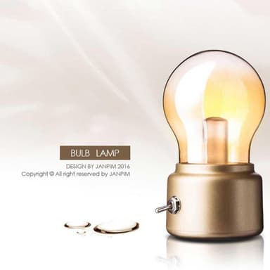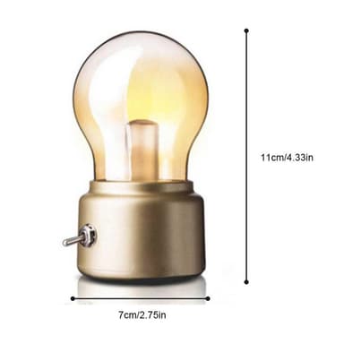 Retro glödlampa för sängbord LED-lampa Uppladdningsbar ABS+glas nattlampa - guldDet guldsprutade glaset, i kombination med den frostade metallstrukturen, har en varm och romantisk atmosfär, vilket gör det fullt av rika brittiska retrokänslorInbyggt uLäs mer om produkten