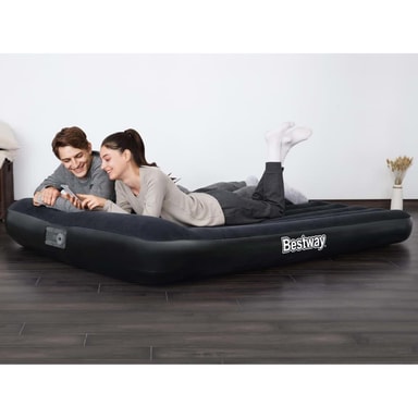 Luftmadrassen Tritech queen är en riktigt bekväm luftmadrass från Bestway med plats för 2 personer som kommer med inbyggd luftpump och kudde, den är perfekt för att få fler sovplatser inomhus.
