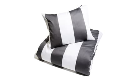 Bäddset av mjuk bomullsatin med breda lodräta ränder.