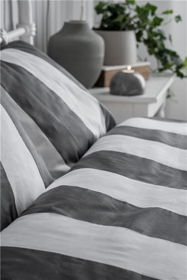 Bäddset i mjukaste satin med stilren design av breda ränder. Trådtäthet: 200 Innehåller två örngott och två påslakan.Läs mer om produkten