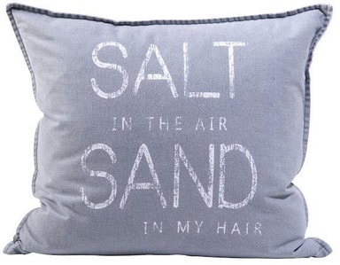 Kuddfodral av bomull med texten “Salt in the air, Sand in my hair”.Tvättråd: Tvättas i 40 grader, Torktumla i låg temperatur.Läs mer om produkten