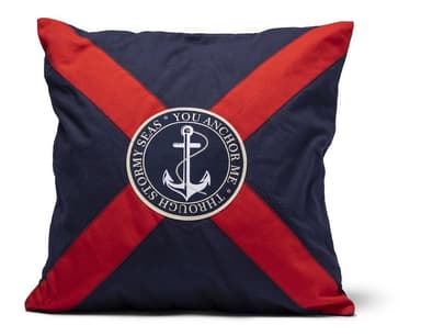 Maritimt och snyggt kuddfodral med matchande påsytt kryss.