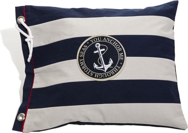 Kuddfodral av kraftig bomull med vågräta ränder, rep genom en öljett i ena hörnet.Storlek: 50x63 cm (för kudde 50x60 cm)Förpackning: plastpåseFärg: MarinTvättråd: Tvättas i 40 grader, torktuLäs mer om produkten