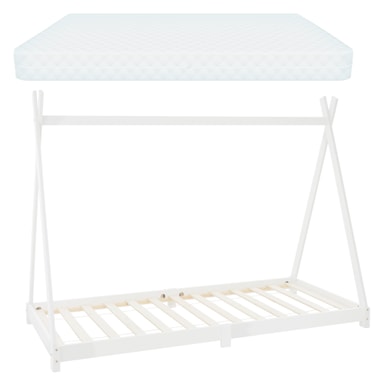 Sängen är lämplig för barn vid 3-9 år. Att hoppa på sängen, romp och spela är inte ett problem. Som ett barn bygger sitt eget fort är en underbar sysselsättning och erbjuder gott om roligt. De vertikala stagarna garanterar ett lekfullt utseende, vilket också tillåter tak eller andra ämnen smycken.