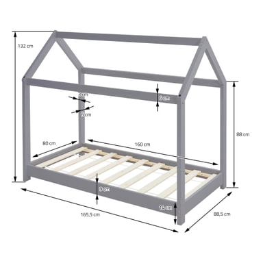 De vertikala strutarna är idealiska för att dekorera sängen med filtar eller lakan, dina barn kan bygga din egen för en snabb och lätt att bygga dig själv. Liggande område på 160 x 80 cm är idealiskt för ett barn upp till 8 år.