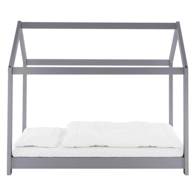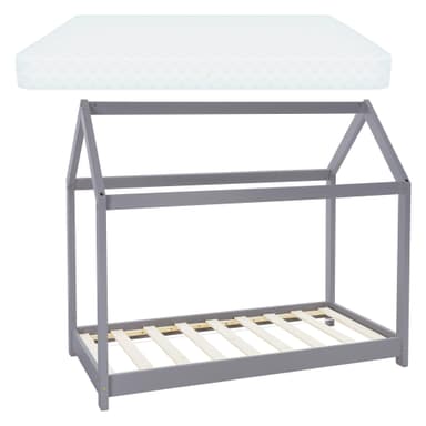 Säng med sänghimmel och spjälram, inkl. madrass 70x140 cm ljusgrå furu ML designLäs mer om produkten