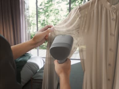 Den 1200-watts Electrolux Care 500 handhållen ånggenerator E5HS1-6UG värms upp på 30 sekunder och levererar 20 g/min ånga för att ta bort rynkor. Dess Glissium 10-sula säkerställer borttagning av veck utan att skada dina kläder.Läs mer om produkten