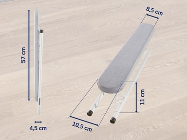 Leifheit ärmbräda med stor strykyta för ärmar i alla storlekar. Lätt att fälla ihop så att den inte tar någon plats alls, och lika enkel att fälla upp igen. Elegant silverfärgad strykbräda. 57 x 10,5 cm.Läs mer om produkten
