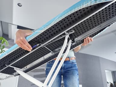 Med Airboard M Solid-strykbrädet reduceras stryktiden med upp till en tredjedel och kläderna blir tydligt slätare med hjälp av en teknik som reflekterar värmen från strykjärnetLäs mer om produkten