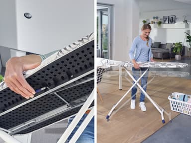 Airboard Express L Solid har allt en modern strykbräda behöver. Strykbrädan är ultralätt och stabil med en extra stor strykyta. Strykytan mäter 130 x 38 cm och arbetshöjden kan justeras mellan 76 och 100 cmLäs mer om produkten