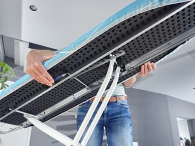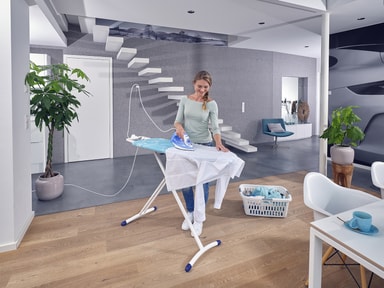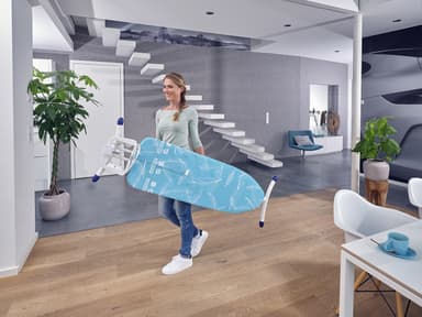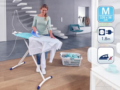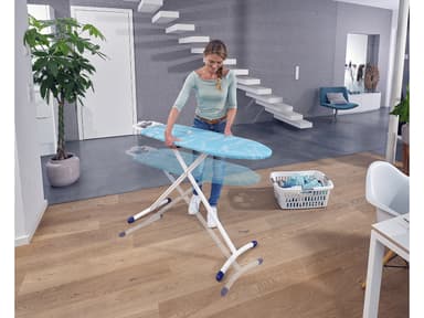 Med Airboard M Solid Plus-strykbrädet reduceras stryktiden med upp till en tredjedel och kläderna blir tydligt slätare med hjälp av en teknik som reflekterar värmen från strykjärnet. Strykytan mäter 120 x 38 cm och kan justeras till en höjd på 98 cmLäs mer om produkten