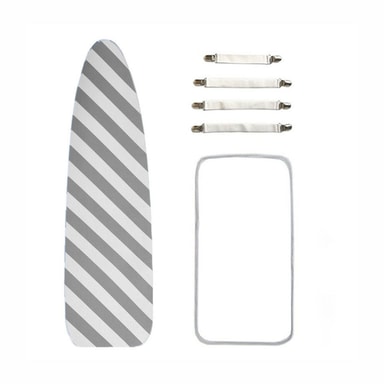 Anti-halk fästklämmor: De medföljande fästena håller strykbrädeskyddet säkert på plats så att du inte behöver rätta till och justera överdraget när du stryker.
