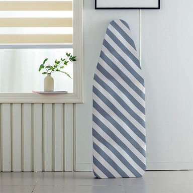 Högkvalitativt strykbrädesöverdrag: Överdraget är tillverkat av mjuk och slitstark bomull, samt polyester och mjukskum för extra dämpning och spänst. De elastiska kanterna säkerställer en tät passform på strykbrädan samt en slät yta för enkel strykning.