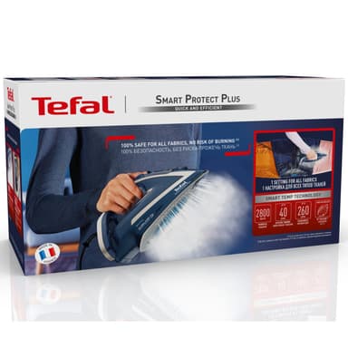 Nya Smart Protect Plus gör strykningen snabb och säkerStrykjärnet har bara en inställning med en optimal kombination av temperatur och ånga och kan användas på allt från kraftig bomull till känsliga material utan risk för att lämna brännmärken.Läs mer om produkten