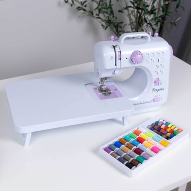 Birgitta Standard symaskinssetet inkluderar allt du behöver för att börja sy, inklusive en mångsidig symaskin, ett förlängningsbord för större projekt och en 60-delars garnsortiment.Läs mer om produkten