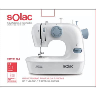 Kompakt symaskin med 12 olika stygn. Gör det själv, sätt tråd till dina idéer. Med den kompakta symaskinen Cotton 12 kan du anpassa dina kläder och skapa din egen stil. Sy tygerna med 12 olika stygn, från de mest grundläggande till de mest dekorativa, och välj dem från ett praktiskt hjul.
