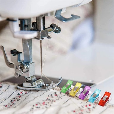 Syklämmor av robust transparent plast. Klämman kan öppnas brett för att hålla lager av tyg och hjälper till att markera tyget och sömmen. Lämplig för olika typer av sömnad, textilkonst och andra textilarbeten.