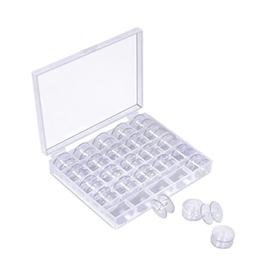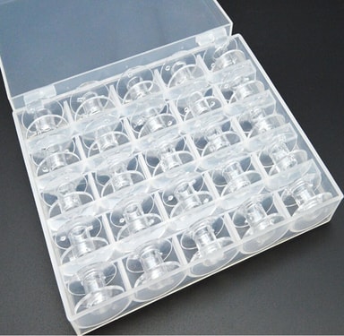 Garnspolar är ett oumbärligt symaskinstillbehör. Dessa tomma spolar är av genomskinlig och hållbar plast. Tomspolen är slät och kommer inte att skada garnet. Levereras i sats om 25 st i en praktisk förvaringslåda.