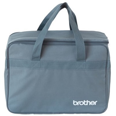 Väskan är tillverkad i nylon och skyddar maskinen mot damm och smuts, så du alltid har en välbevarad symaskin. Färgen är grå med en vit Brother logo på sidan.