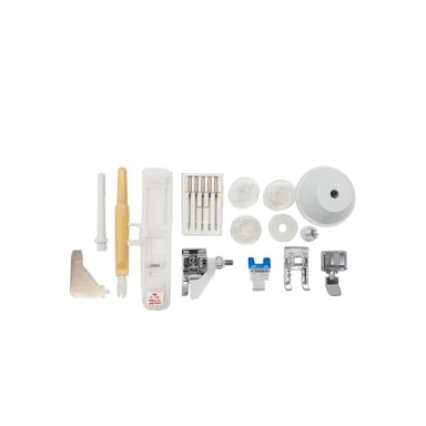 Mindre arbete, roligare och tid för kreativt uttryck. Symaskinens nålträdare är särskilt användbara eftersom du inte behöver spendera en lång tid på att träda. Detta gör att du kan komma igång med att sy snabbt. Den stora arbetsytan med den avtagbara tillbehörslådan är idealisk för att sy i stora tygbitar, men också bra för till exempel smala ärmar. I tillbehörslådan finns extra spolar och extra pressarfötter som enkelt kan bytas ut.